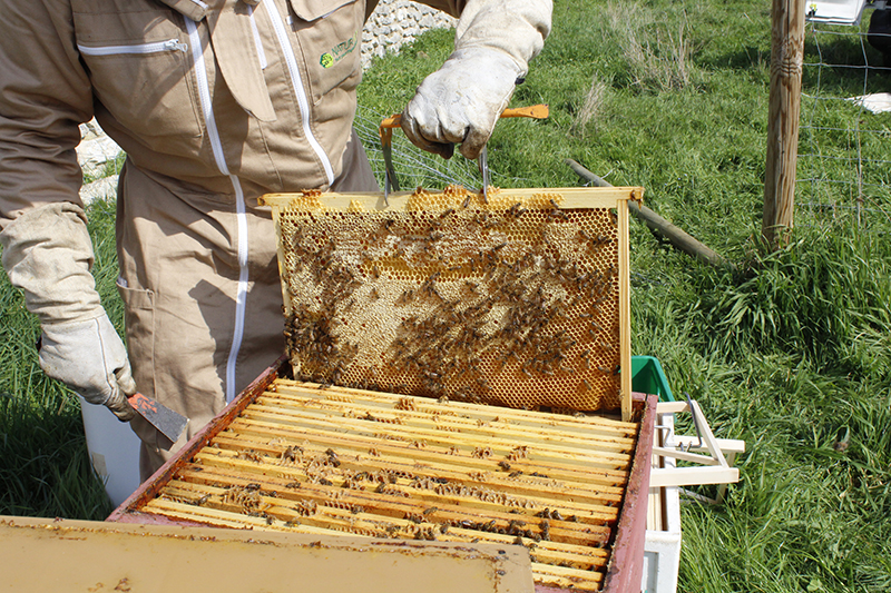 Courant mars, les apiculteurs ont ouvert chaque ruche pour la visite de printemps. C’est le premier rendez-vous majeur avec les abeilles. L’objectif est de faire un état des lieux de la colonie. Les abeilles sont-elles présentes en nombre ? La reine est-elle présente ? Pond-elle activement ? La mise en réserve de nectar et pollen a-t-elle commencé ? Et le couvain, se développe-t-il comme il faut ? Autant de points qui sont observés avec attention durant cette visite.